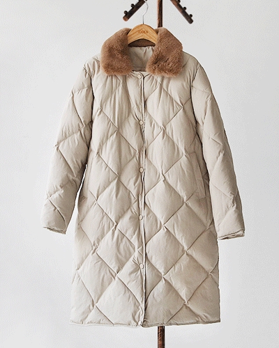다이아 누빔 퀄팅 카라 퍼 패딩