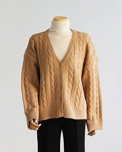 루즈핏 꽈배기 니트 가디건