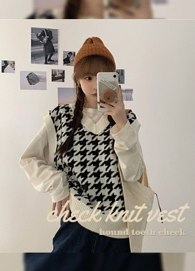 하운드투스 체크 배색 브이 넥 베스트