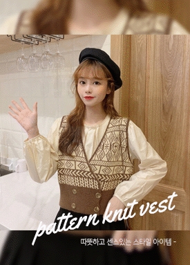 [당일발송] 브이넥 패턴 배색 버튼 니트 베스트