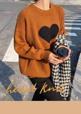 하트 프린팅 루즈핏 라운드 니트