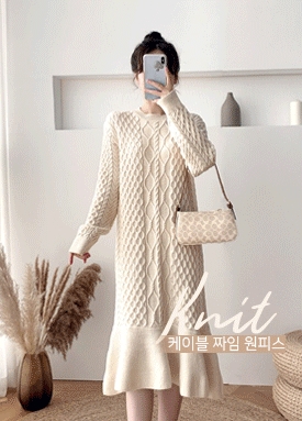 [재입고] 케이블 짜임 플레어 라인 비스코스 니트 원피스