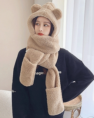 SSI25127 곰돌이 후드 양털 머플러 장갑