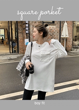 사각 포켓 루즈핏 라운드 티