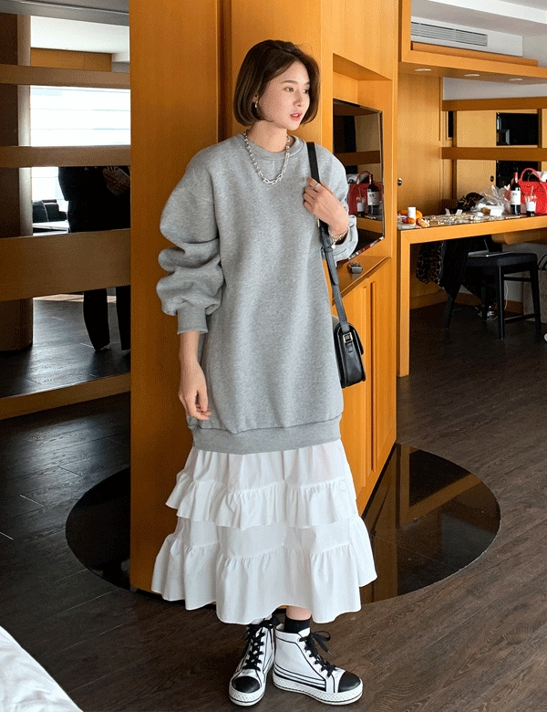 프릴캉캉 왕기모 벌룬소매 롱 원피스