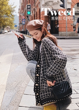 [당일발송] 트위드 디자인 브이넥 스티치 가디건