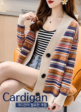 [당일발송] 패턴 스트라이프 브이넥 가디건