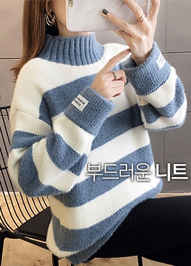 [당일발송] 하이넥 인조밍크 스트라이프 니트
