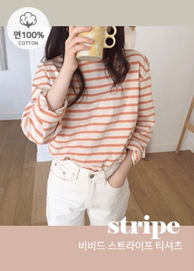 비비드 스트라이프 패턴 코튼 티셔츠