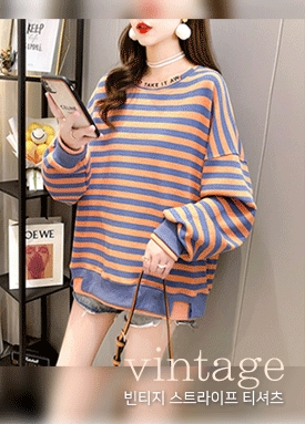 [재입고] 빈티지 넥 프린팅 스트라이프 티셔츠