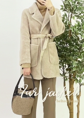 [당일발송] 허리끈 장식 포켓 인조 퍼 자켓