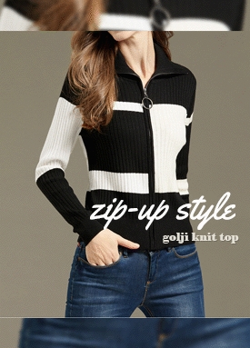 [3월 25일 발송] 집업 스타일 골지 니트