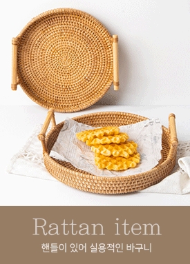[3월 17일 발송] 핸드메이드 라탄 손잡이 원형 바구니