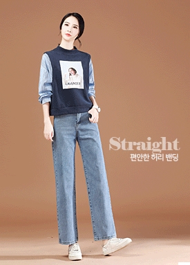 와이드핏 밴딩 데님 팬츠