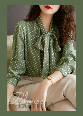 리본 타이 도트 러블리 블라우스