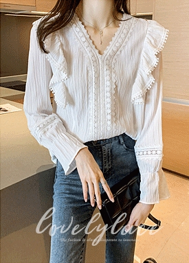 레이스 프릴 화이트 블라우스 [4월 16일 발송]