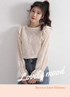 [3월 8일 발송] 플라워 자수 레이스 프릴 블라우스