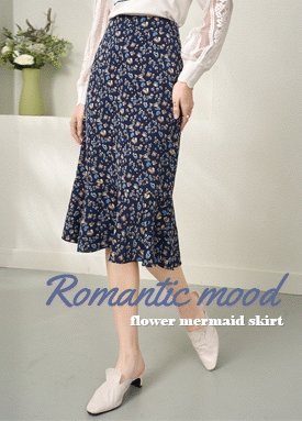 [4월 5, 6일 발송] 플라워 나염 머메이드 라인 스커트