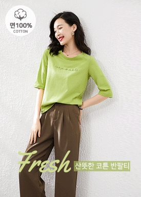 자수 레터링 9부 티셔츠