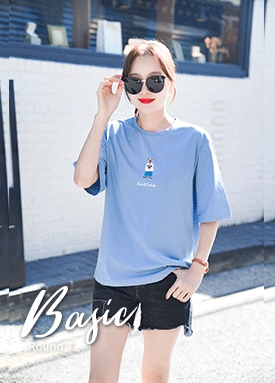 빈티지 베어 자수 반팔 T셔츠