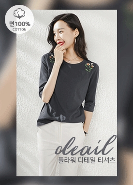 숄더 플라워 자수 9부 반팔티