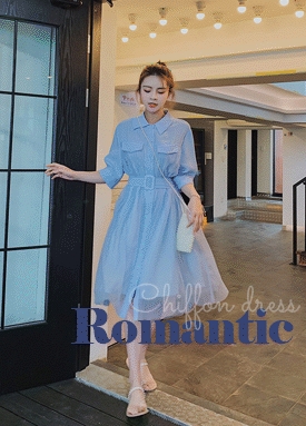 샤 스커트 셔츠 미디 원피스 [4월 9일 발송]