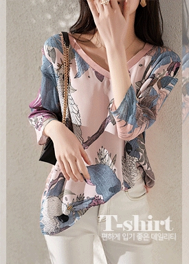 [당일발송] 오버핏 프린트 쉬폰 티셔츠§