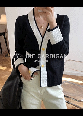 [재입고] Y라인 배색 버튼 스판 가디건