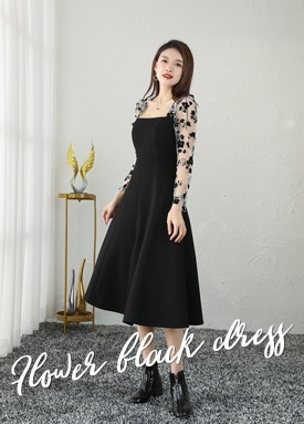 블랙 플라워 프론트 트임 원피스 [5월 6일 입고 예정]
