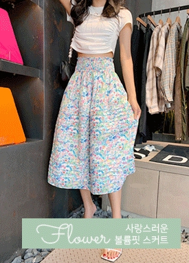 [봄격시작] 스모크 밴딩 볼륨핏 플라워 스커트