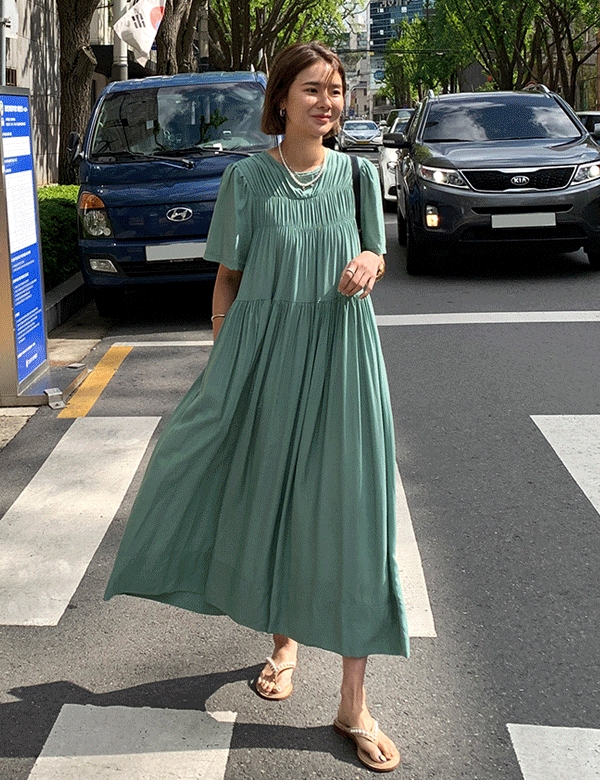 엘린 밴딩셔링 절개 플레어 롱 원피스