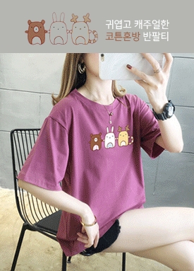 [당일발송] 캐릭터 프린팅 코튼혼방 반팔티