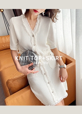 [어마어마SALE]태슬 버튼 니트 가디건 탑+스커트 세트