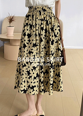 노란 꽃 밴딩 스커트