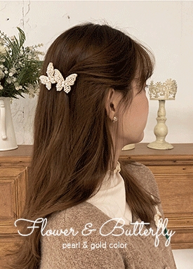 나비&플라워 진주 장식 헤어핀 4종