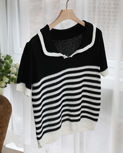 플랫 카라 스트라이프 니트