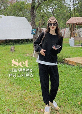 [재입고] 사이드 버튼 니트 맨투맨+세로 핀턱 조거 팬츠 세트