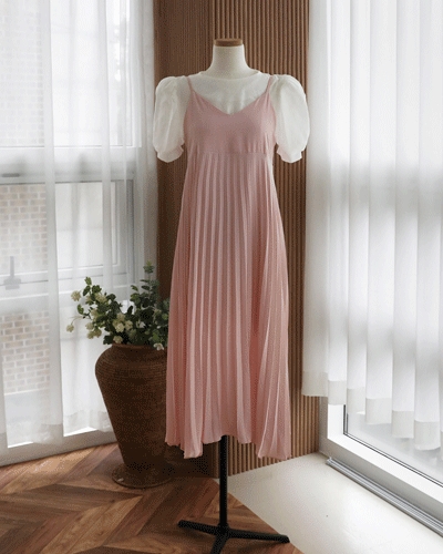 OPS3398/V-Neck Hem Flare Dress시원한 소재감