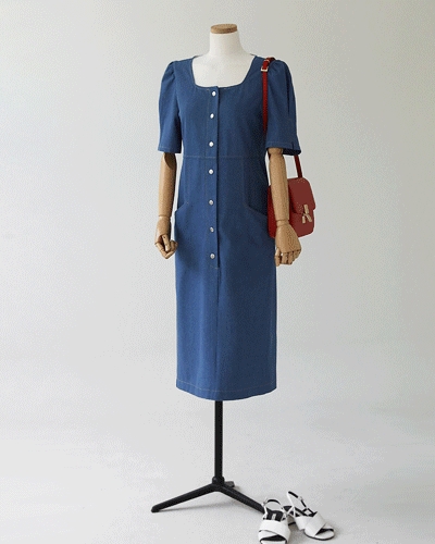 스퀘어 넥 데님 원피스