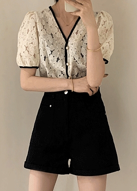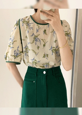 [당일발송] 리본 코튼 플라워 블라우스