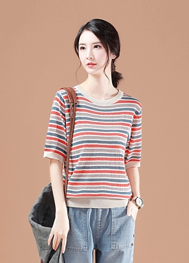 비스코스 스트라이프 반팔 니트