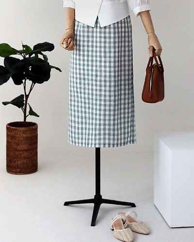 린넨 체크 밴딩 스커트