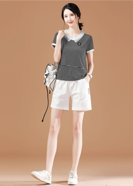끝단 트임 자수 8부 밴딩 데님 팬츠