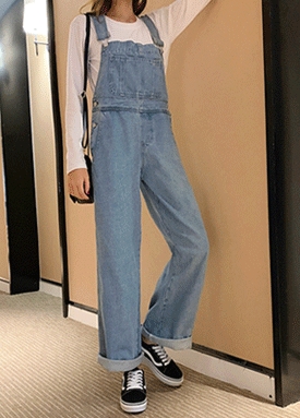 [재입고] 워싱 디테일 데님 멜빵 바지
