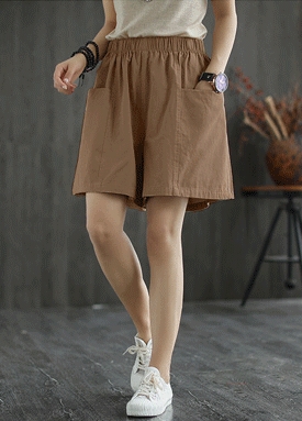 뒷 밴딩 핀턱 와이드 반바지 [6월 7일-6월 10일 발송]