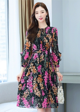 벨티드 프릴 플라워 원피스