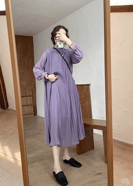 [당일발송] 프릴 플리츠 롱 원피스