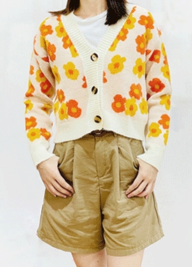 [당일발송] 컬러 플라워 패턴 비스코스 브이넥 가디건