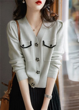 [재입고] 샤이닝 플라워 버튼 니트 가디건