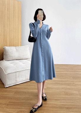 [봄격시작] 카라 버튼 예쁜 라인 니트 원피스
